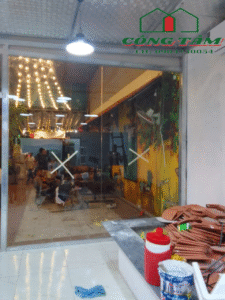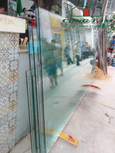 Cửa kính cường lực của Nhôm Kính Công Tâm được làm từ kính chịu lực dày 10 – 12mm, an toàn và bền đẹp.