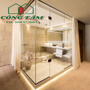- Chất liệu kính cường lực cao cấp: Sử dụng kính cường lực dày 8-12mm, chịu lực tốt, chống vỡ và an toàn khi sử dụng.